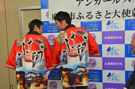 府中市では、本市の魅力を広く市内外にPRするため、平成27年4月に、お笑いタレント「アンガールズ」の田中卓志さん(府中市上下町出身)・山根良顕さんに「府中市ふるさと大使」に就任いただきました。