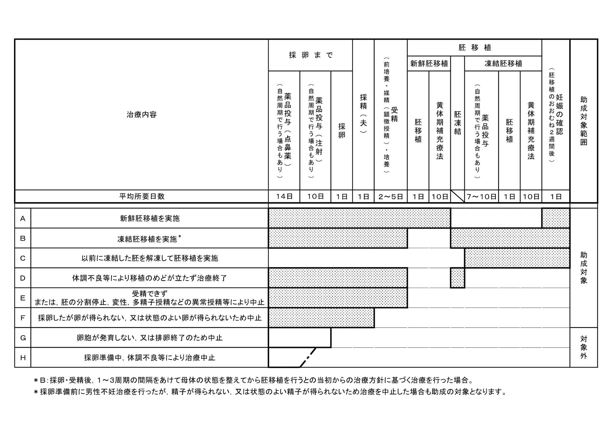 別表1 体外受精・顕微授精治療のステージの考え方
